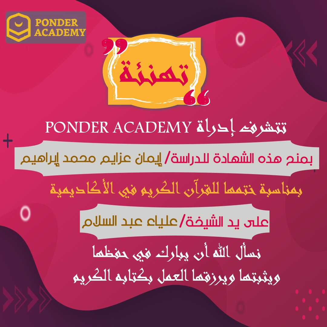 مبارك للدارسة الكريمة انضمامها لقافلة الحفاظ من خلال أكاديميتنا المباركة داعين الله ان يتقبل منا جميعا